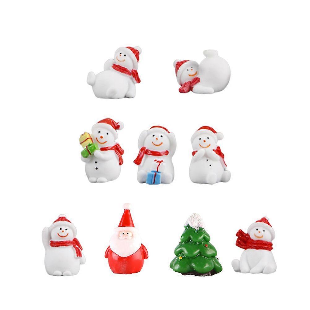 Mini Craft Christmas Decoration 9Pcs Snowman Santa Claus Tree Ornaments For Garden Courtyard Microlandscape Use