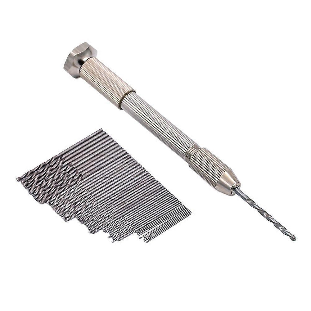 Mini Hand Drill 51 Pcs Set Silver Precision Pin Vise Rotary Jewelry Repair Wire Gauge Bit Tool Craftsmen