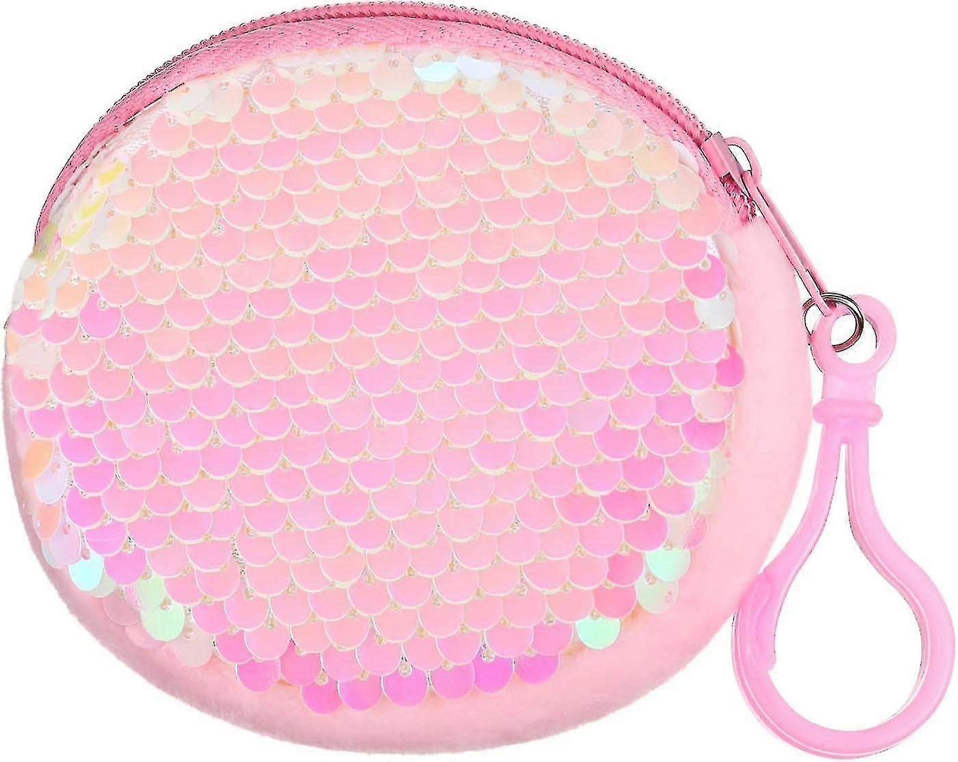 Children's Portable Round Mini Sequin Coin Purse Birthday Gift (light Pink)