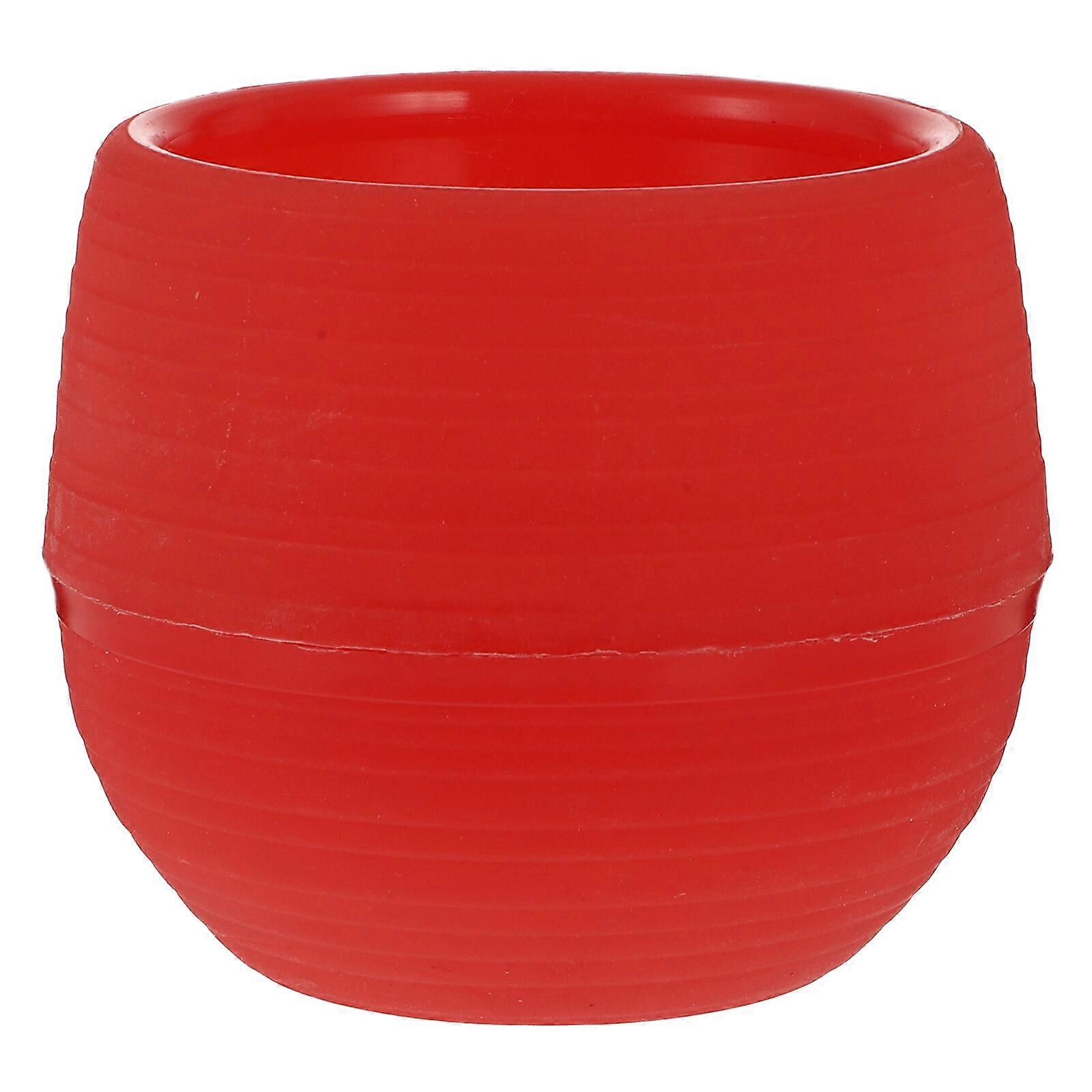 Mini Round Resin Flower Pot Solid Color Planter Home Office Decor for Succulents Cactus (Wine Red)