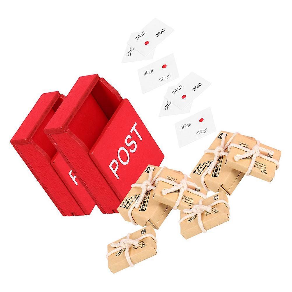 Mini Mailbox Toy Ornaments Square Shape Wood and Paper Material for Early Childhood Education 5.00X3.50X1.60CM 2Sets