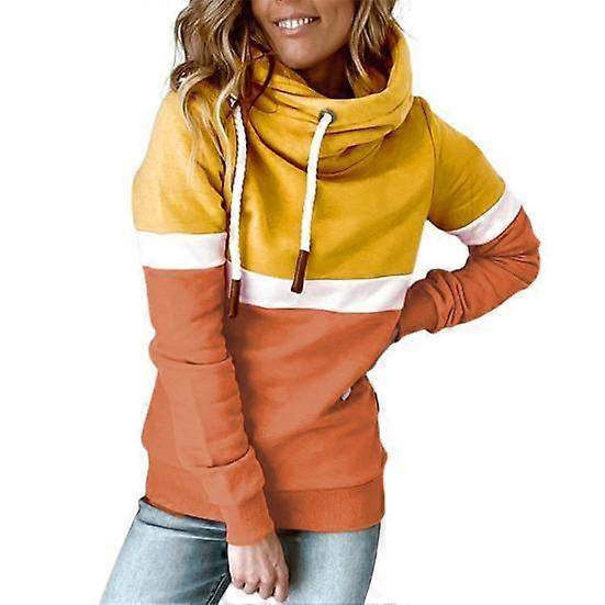 Miss Angel Fashion Winter Warm Women Contrast Color Winter Long Hoodie Patchwork Autumn Sleeve Drawstring Hooded Sweatshirt