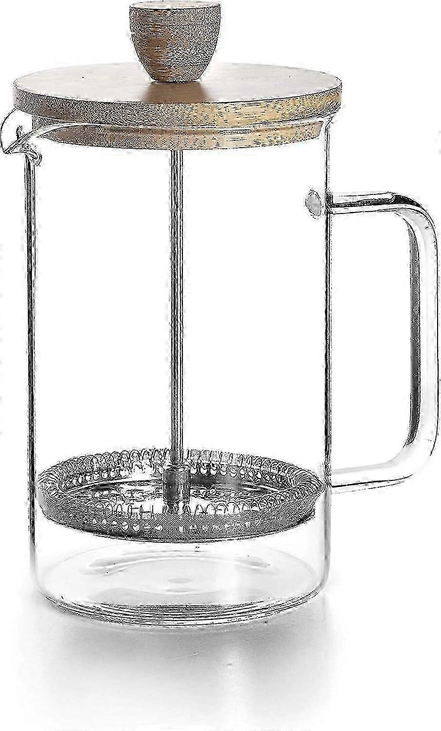 Glass French Press with Wooden Lid, Borosilicate Glass Coffee Pot with Wooden Lid, Heat Resistant and Explosion-Proof, Green Tea Pot, 800ml