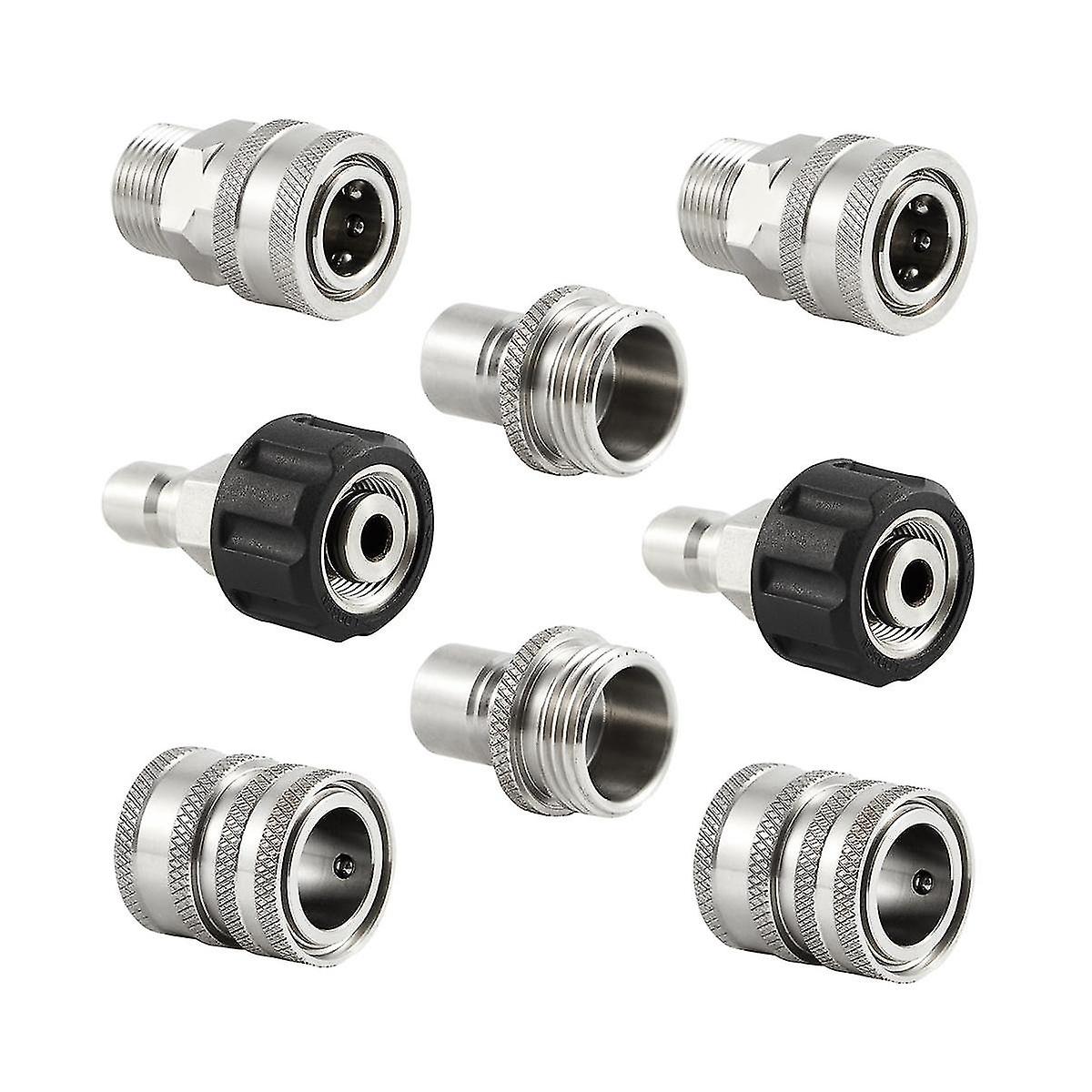 Stainless Steel Pressure Washer Quick Connect Kit,m22 14mm To 3/8in Quick Connect,3/4in To 1/2in Qui