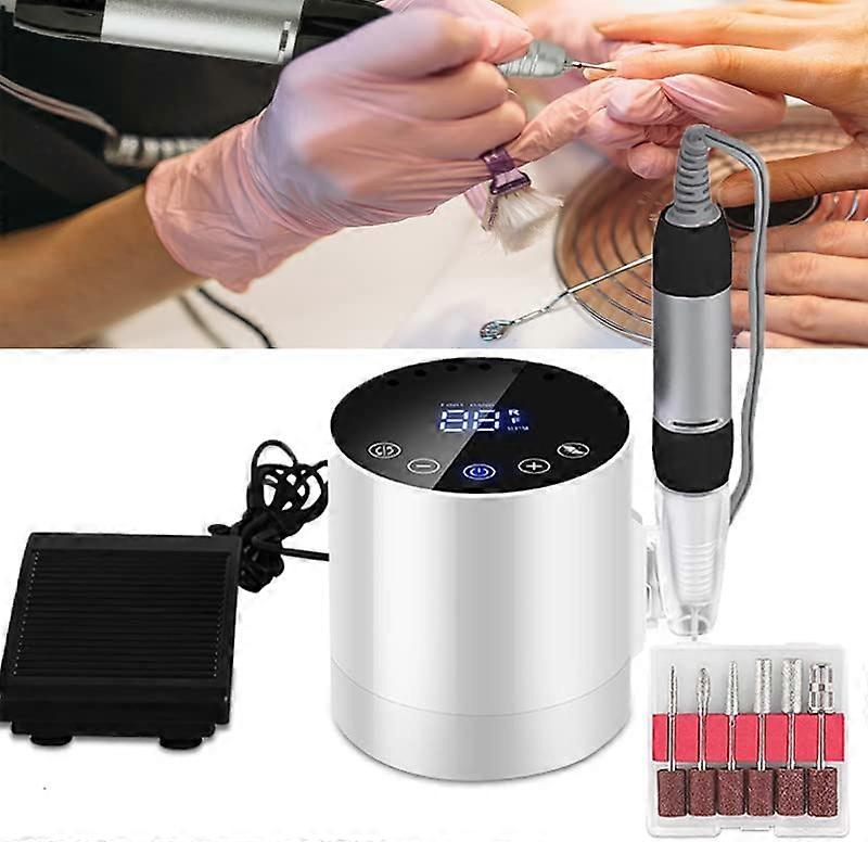 35000 Rpm Professional Nail Drilling Machine With 6 Metal Grinding Heads, Touchscreen Electric Nail Sander Nail Drill For Gel Nail Accessories And Too