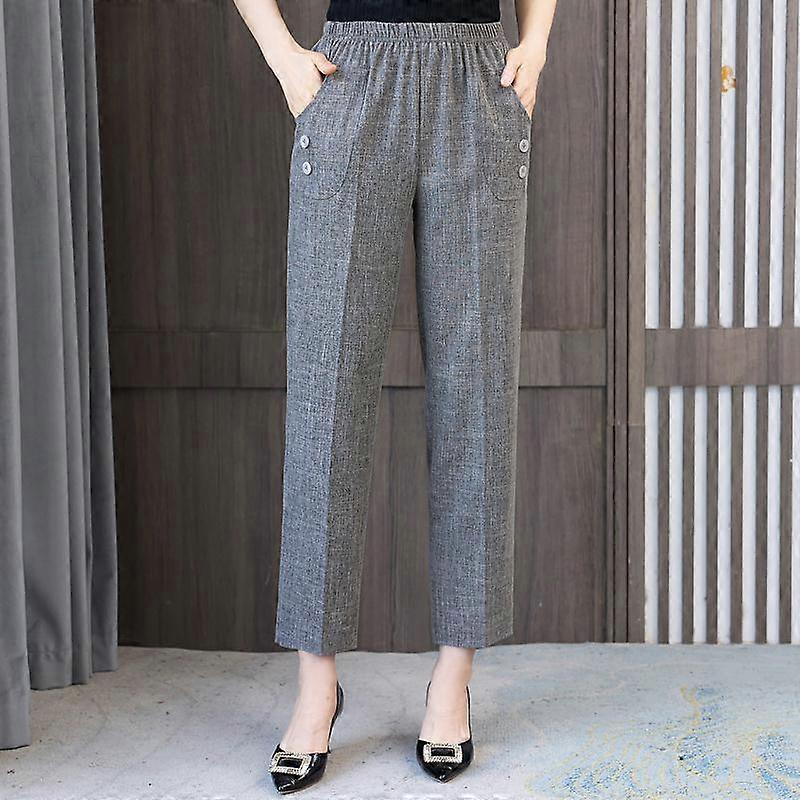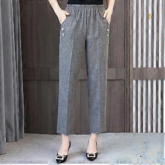 Plus Size L-6XL Summer High Waist Pants Women Elastic Waist Cotton Linen Long Trousers Summer Basic Bottoms