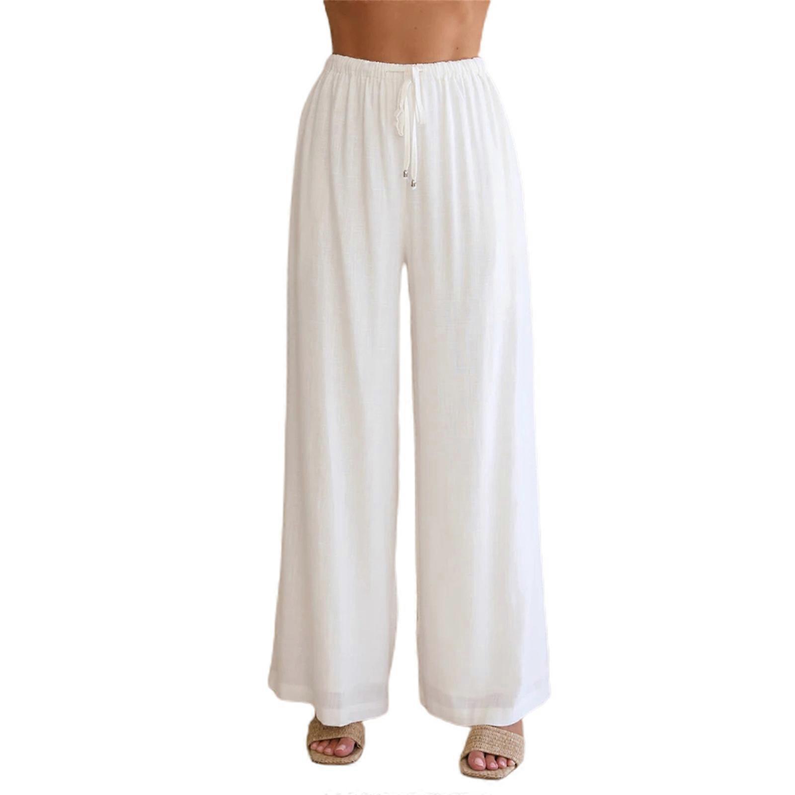 High Waist Elastic Waist Pants Soft Casual Style Trousers Solid Color Loose Fit School Office Ladies Breathable Clothing White XL