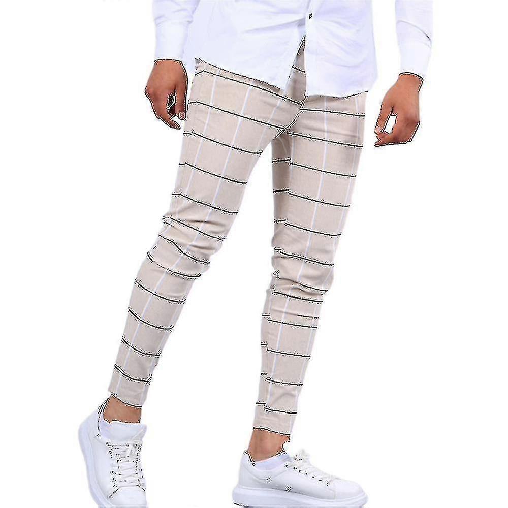 Men's Plaid Casual Chinos Work Pants Slim Fit Skinny Business Trousers Pants