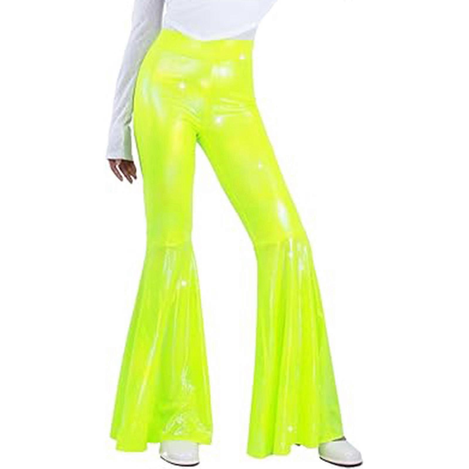Sparkles Sequins Flares Pants Elastic High Waist Glitter Dance Pants Night Out Clubwear Women Wide Leg Palazzo Pants XL Yellow