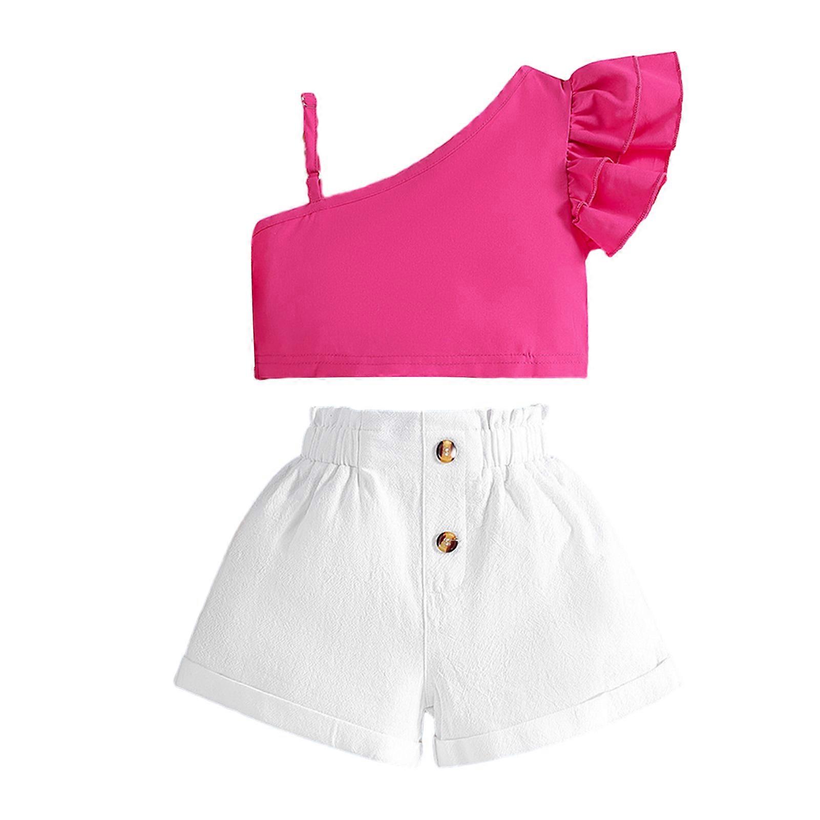 Summer Girl's Fashion Off-Shoulder Top Pants Set Versatile Comfy Casual Clothing for Home/Trip/Daily