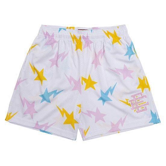 Women Men Shorts Elastic Waist Print Casual Mesh Shorts Breathable Star Wide Leg Running Basketball Athletic Pants Board