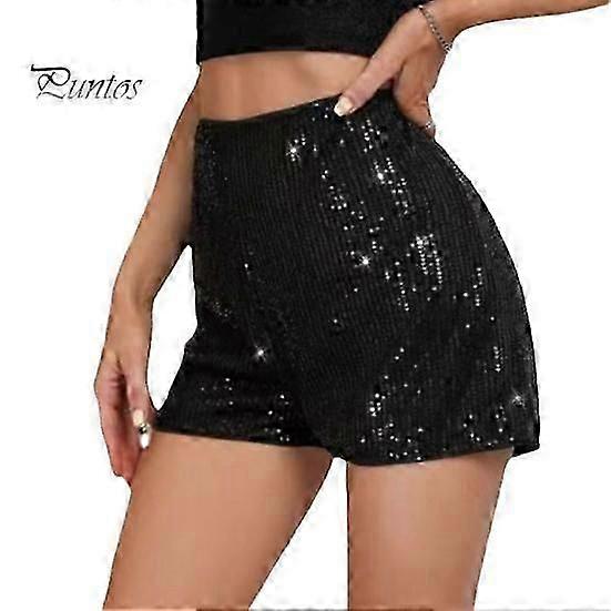 Women Shorts High Elastic Waist Shiny Sequin Solid Color Straight Slim Fit Soft Breathable Above Knee Length Club Party Beach Mini Shorts