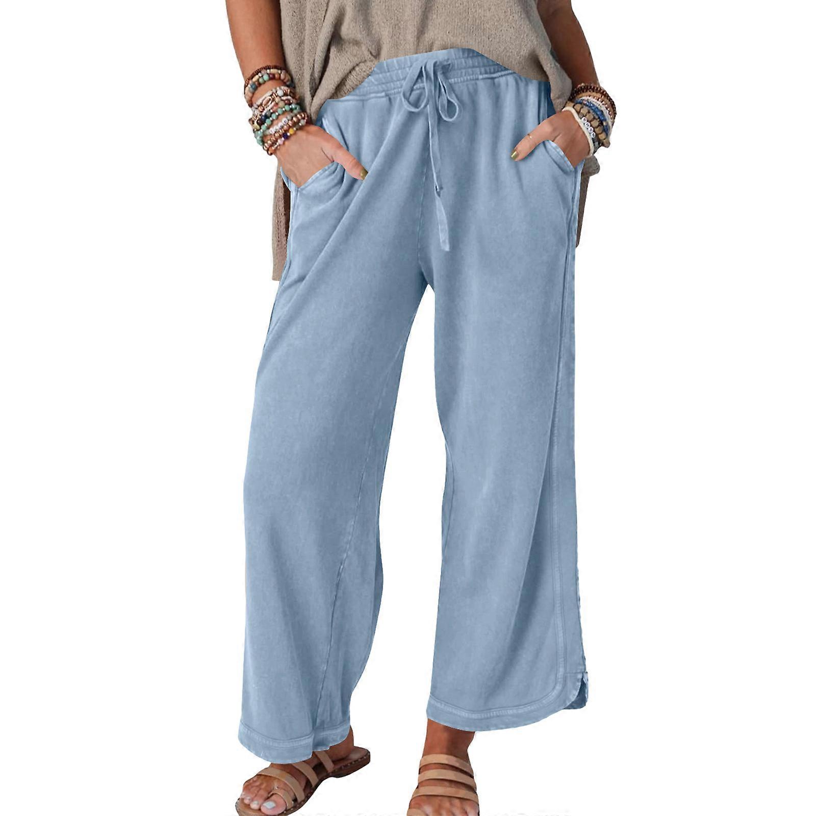 Stretchy High Waist Wide Leg Trousers Lightweight Cotton Casual Long Pants with Pockets for Spring Summer Light Blue XL