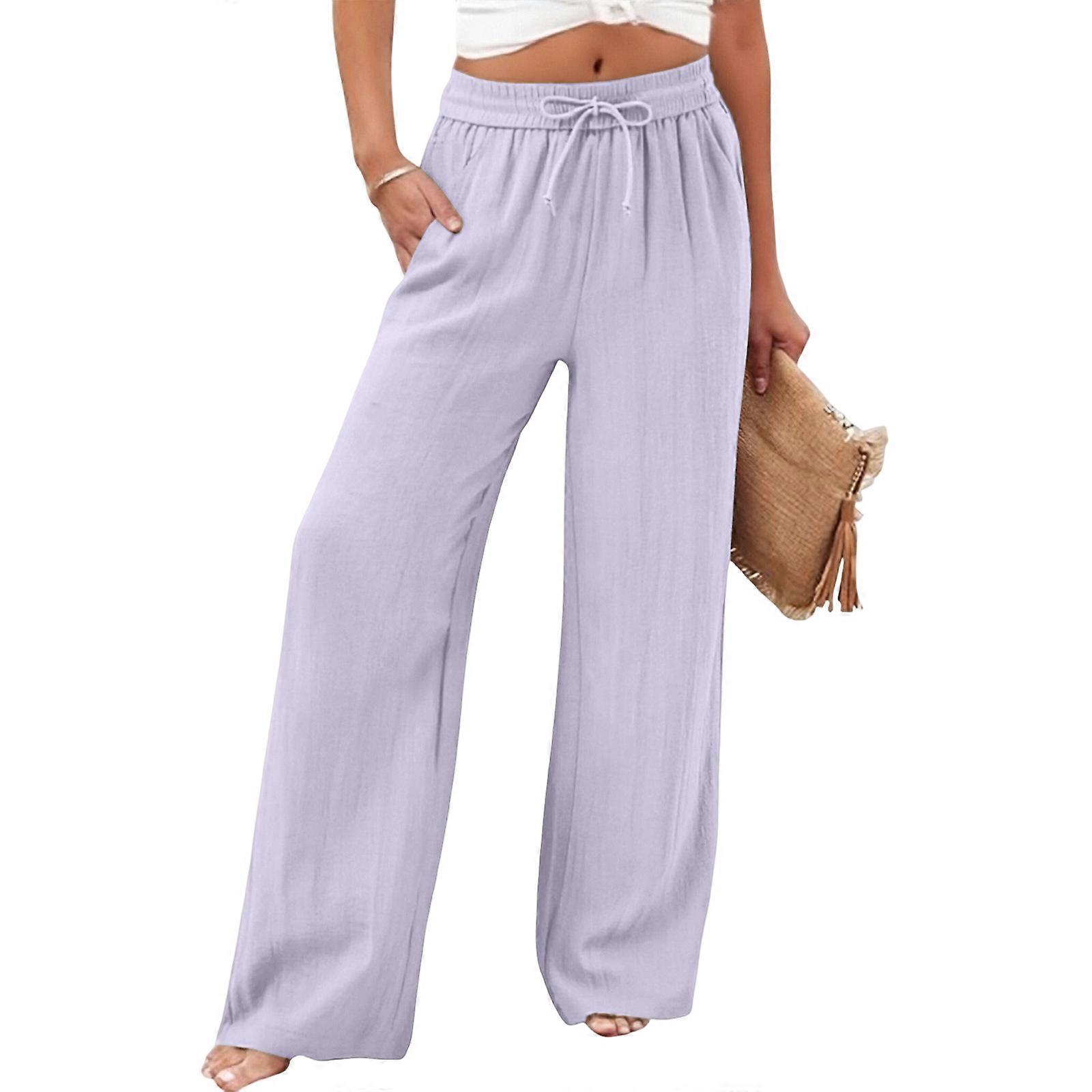 Women's wide-leg casual beach shorts, cotton and linen loungewear, travel/work pants with pockets Purple XL