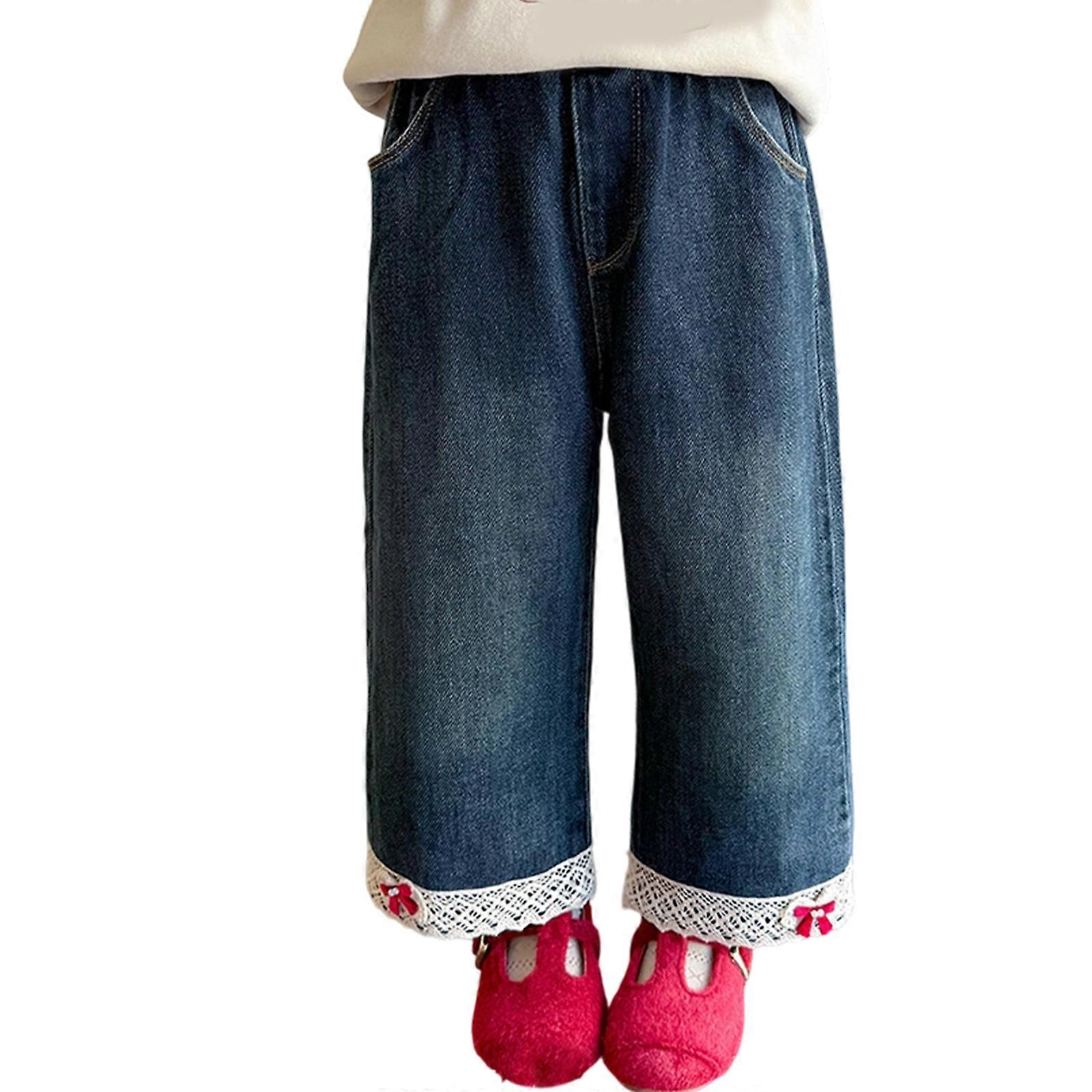 Winter Trousers Elastic Winterproof Girls Stretch Waist Jeans Flannel Lined Cotton Blend Playtimes Bottoms Blue 90cm
