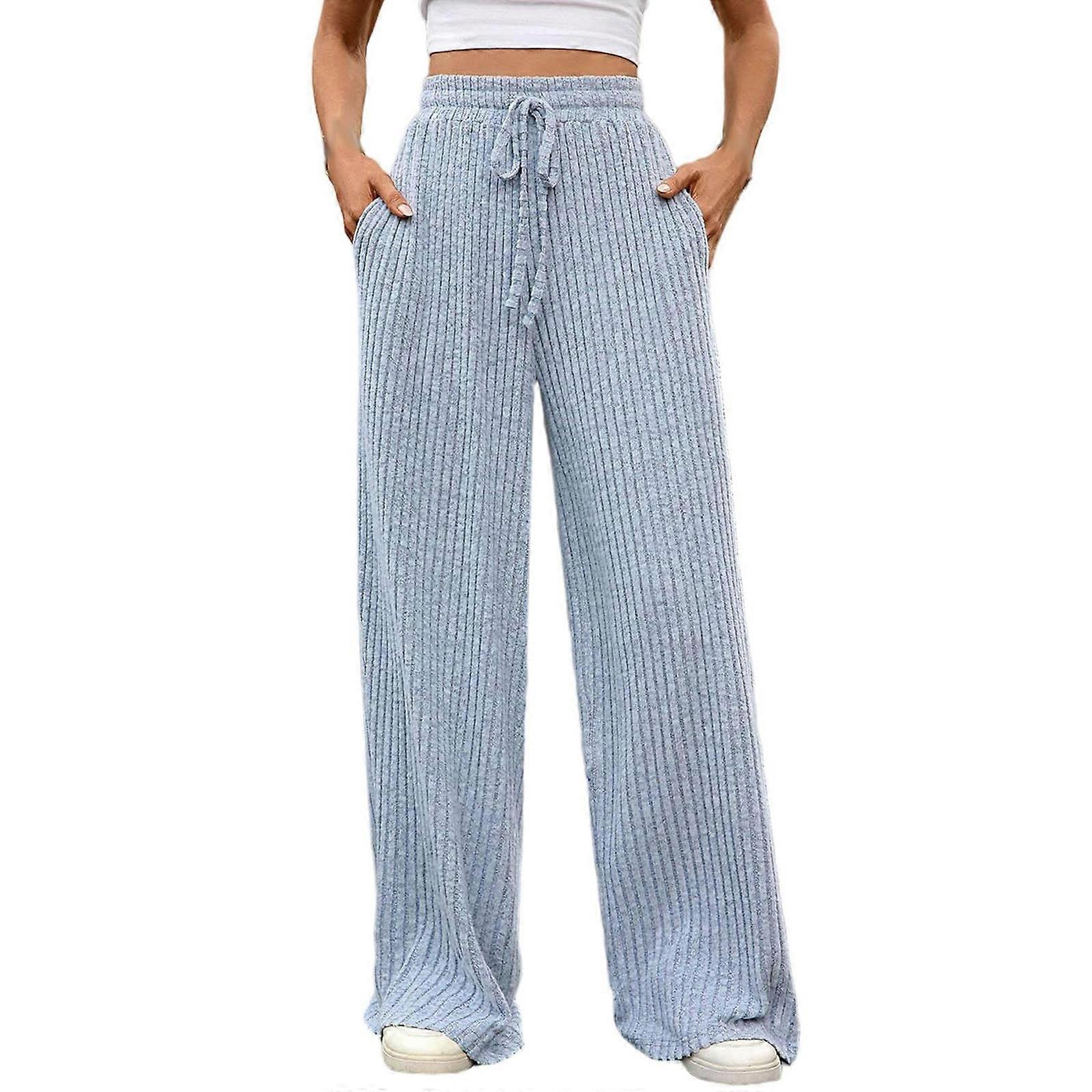 Womens Textured Ribbed Knit Sweatpants Wide Leg Loose Sweater Trousers with Pockets Drawstring Winter Fall Knit Pants Light Blue XL