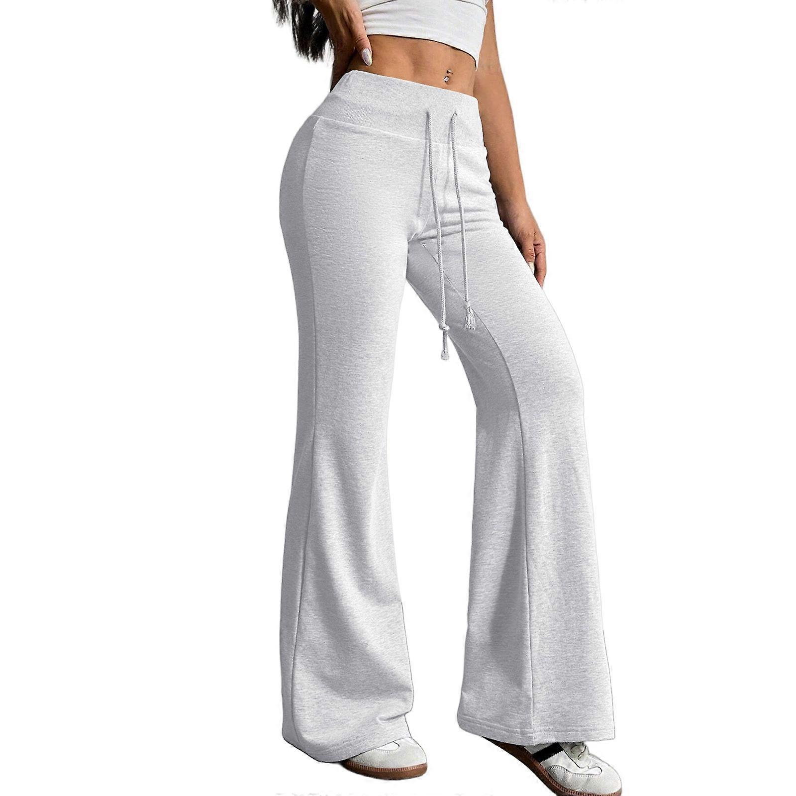 Women's Drawstring Waist Bell Bottom Flare Leg Sweatpants Sports Causal Pants White XL