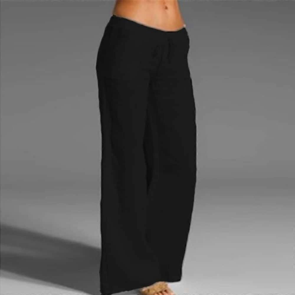 Women's High Waist Yoga Pants Wide Leg Drawstring Pants Bottoms Quick Dry Solid Color Blue Gray Dark Navy Cotton Yoga Fitness Gym Workout Summer Plus