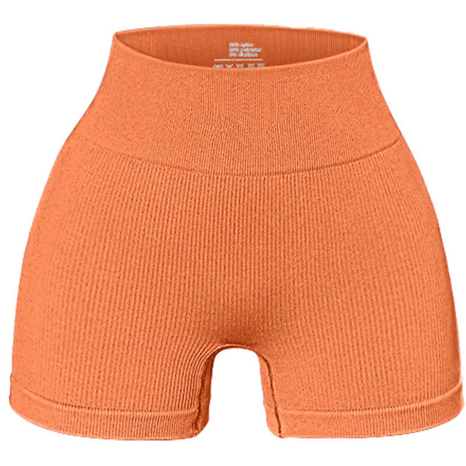 High-Waisted Butt-Lifting Yoga Shorts for Women Ribbed Workout Gym Shorts Tummy Control orange S