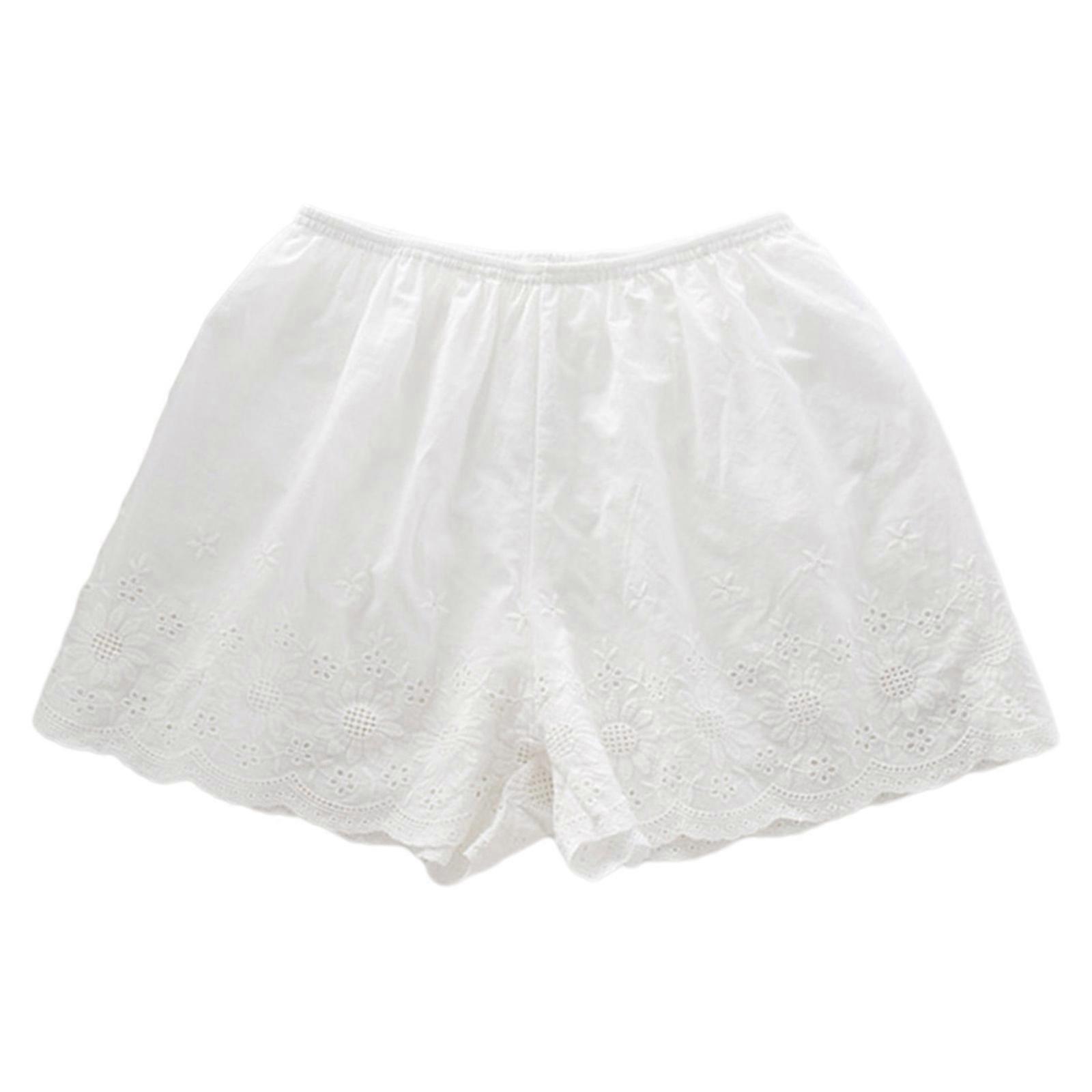 Women Gym Shorts Loose Solid Hollow Out Underwear Shorts Safety Pants Loose Anti-glare Under Skirts Middle Thigh Shorts small daisy white One Size