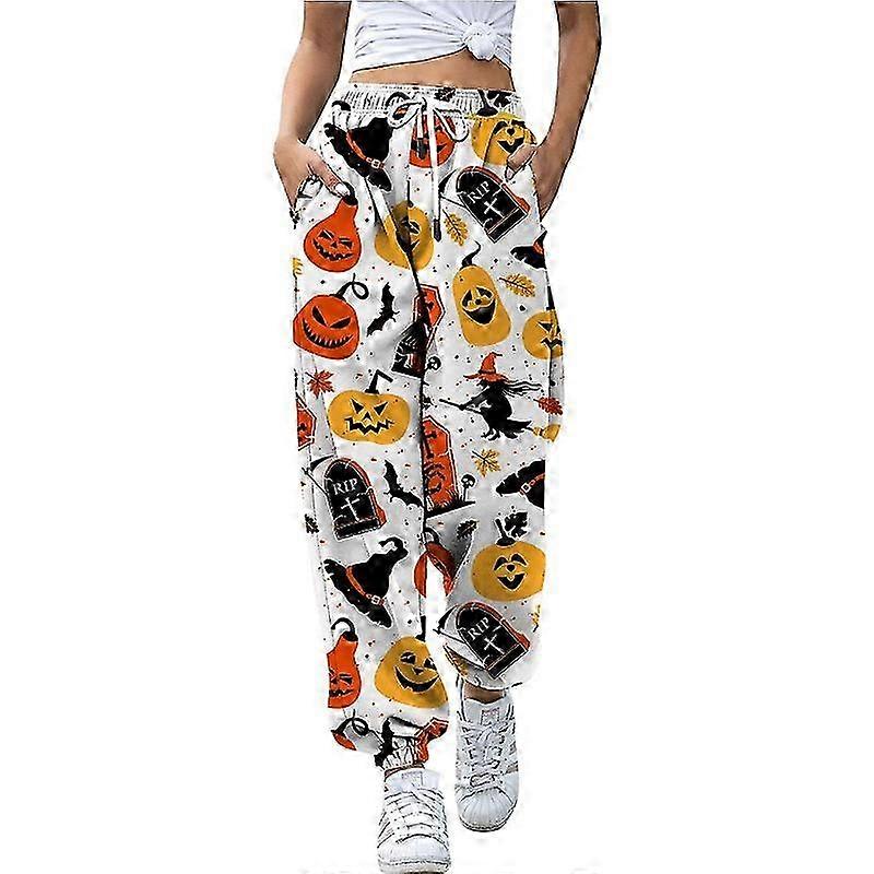 Halloween Pants Pumpkin Print Halloween Pants, Casual Drawstring Elastic Waist Pants, Women's Clothing