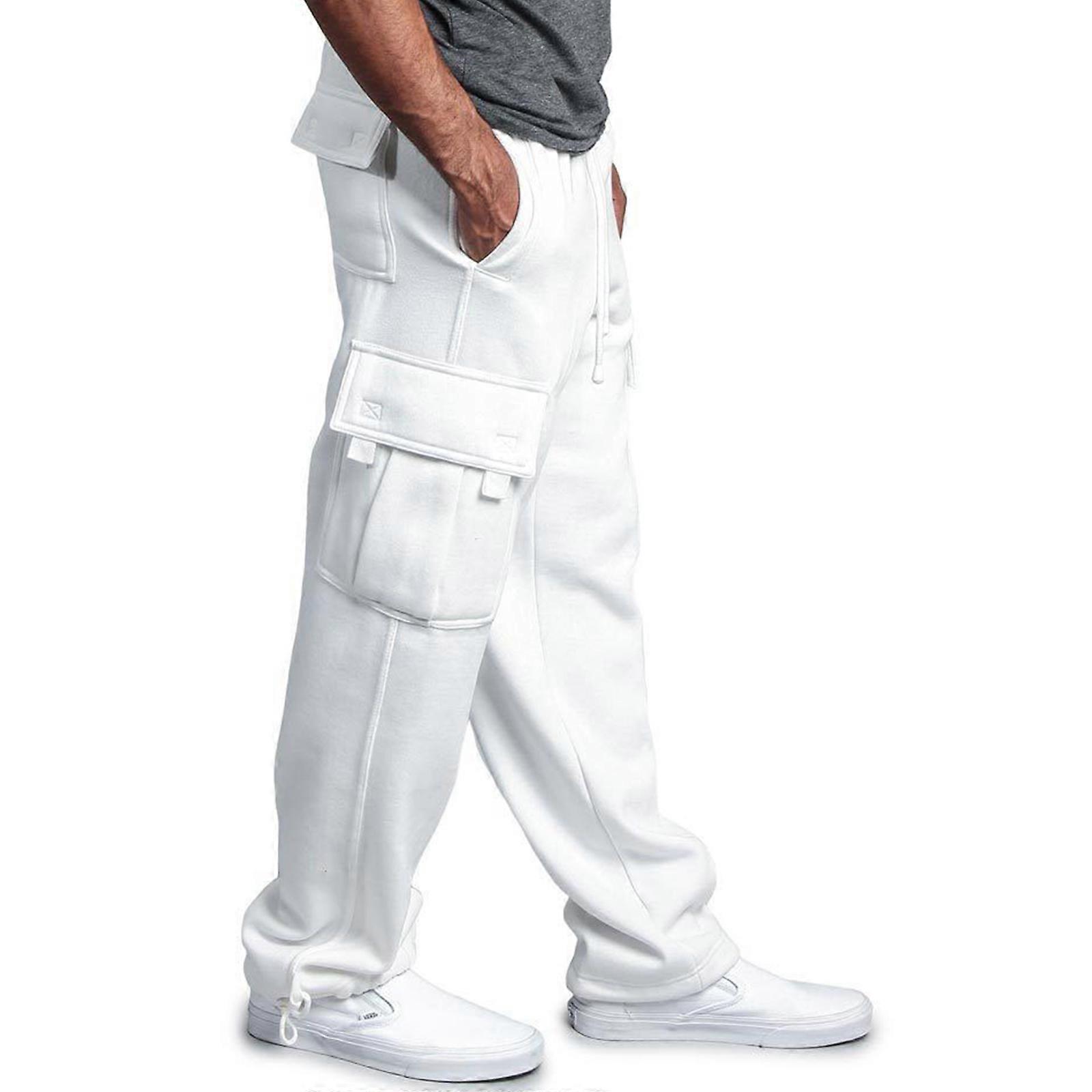 Men Elastic Waist Cargo Pants,Casual Loose Fit Lightweight Workwear Pull On Pants Joggers Sweatpants Sports White XL