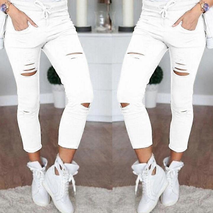 Cargo Pants Women Fashion Slim High Waisted Stretchy Skinny Broken Hole Pencil Pants Solid Color Streetwear Trousers