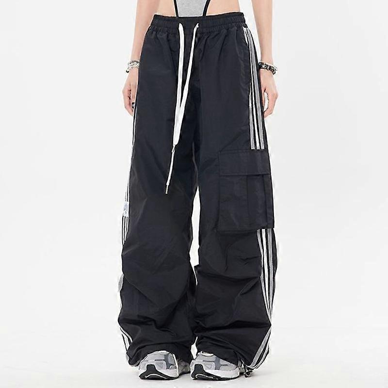 Y2K Kpop Cargo Pant Women Drawstring Pockets Wide Leg Chic Punk Pants Baggy Striped Sports Sweatpants Parachute Jogger Trousers