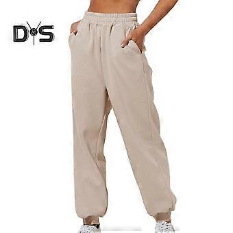 Women Pants High Elastic Waist Ankle banded Solid Color Casual Soft Warm Pockets Loose Spring Fall Sweatpants Jogging Trousers