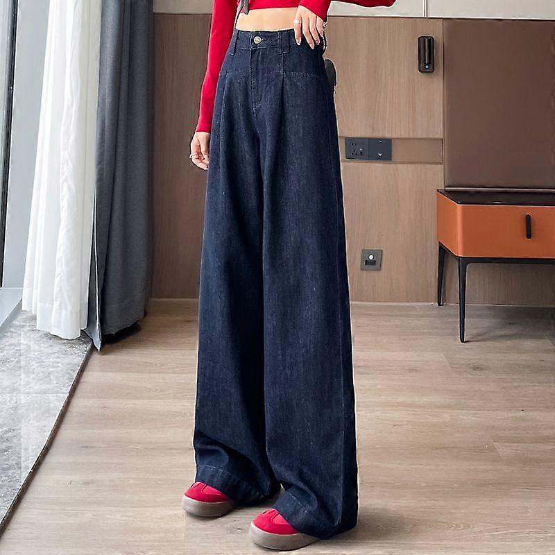 Zhengzhou Women's Pants Dark Blue Retro Denim Wide-Leg Pants For Women's Spring And Autumn High Waist Loose Versatile Straight-Leg Mopping Pants 8290