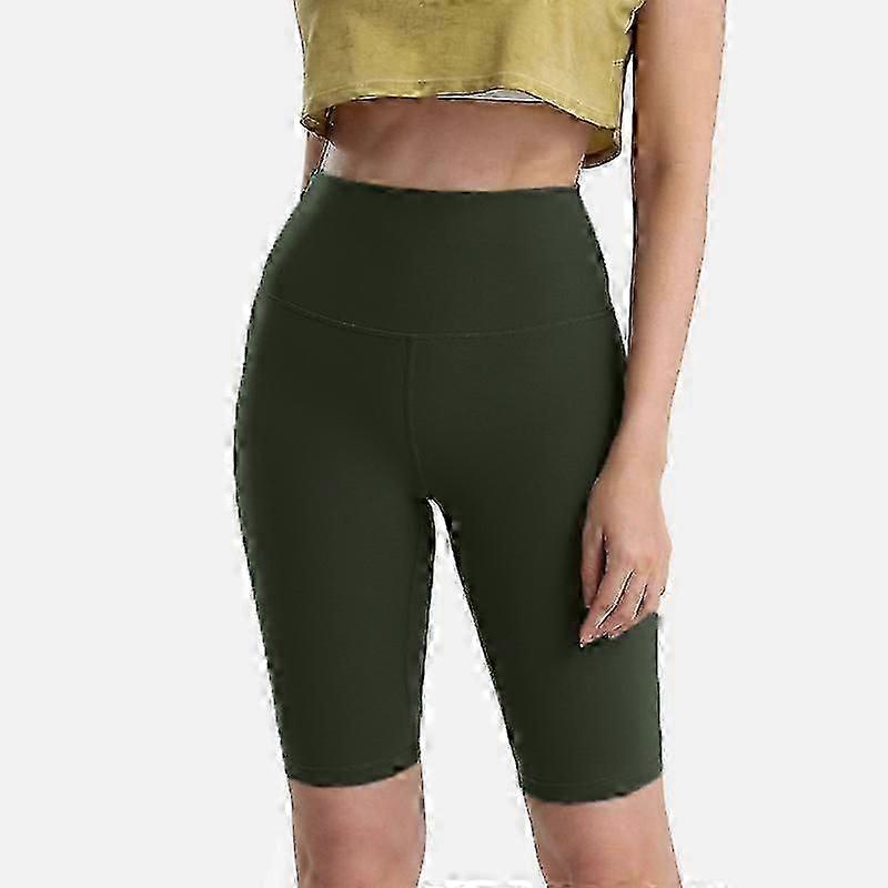 Exquisite High waisted, skintight, nude-trimmed sports and fitness shorts olive green