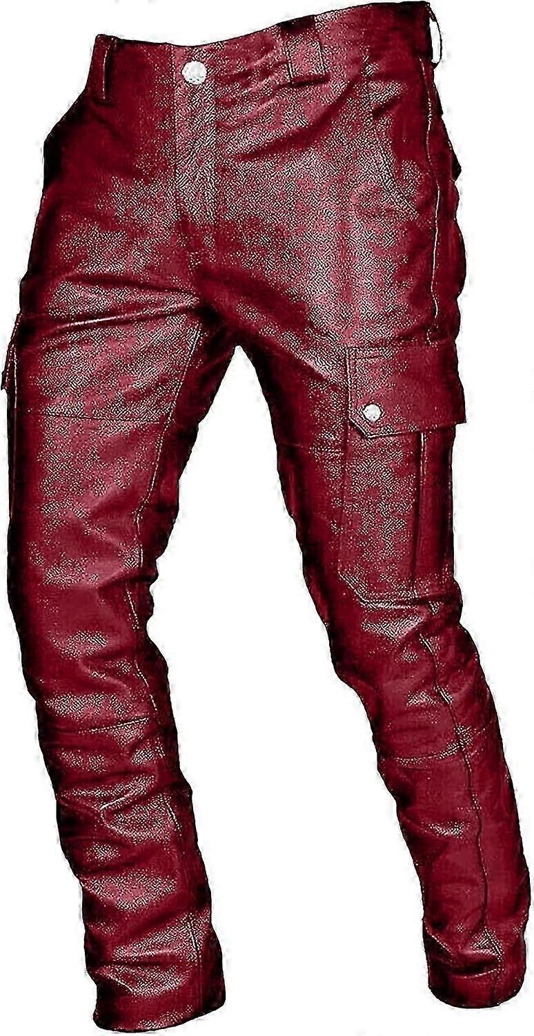 Mens Punk Pants Vintage Gothic Steampunk Faux Leather Biker Pants Metallic Motocycle Hip Hop PU Leather Denim Pants