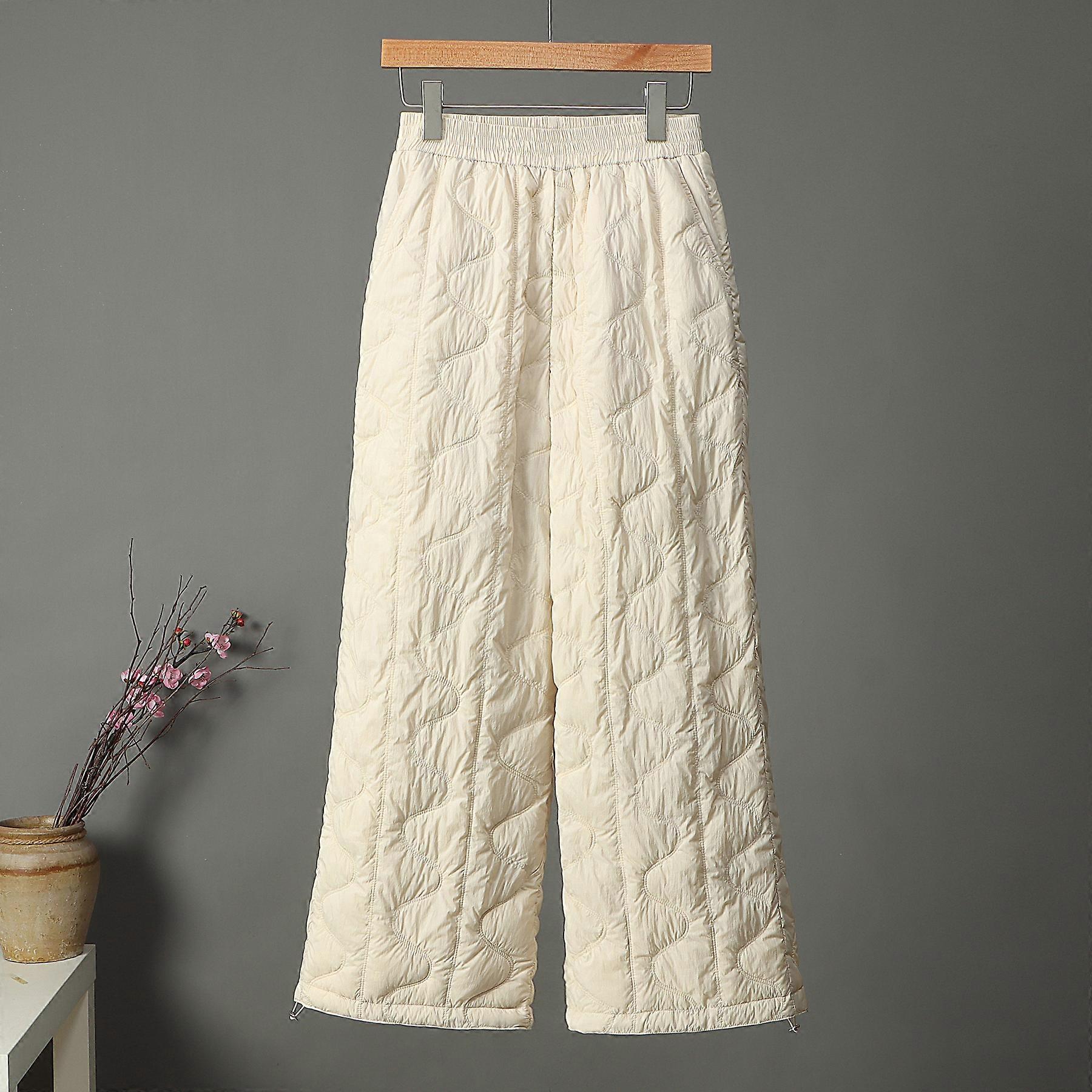 Women's down-filled pants, new winter style for 2025, loose fit, 90% white duck down, warm, casual, fashionable, wide-leg pants.