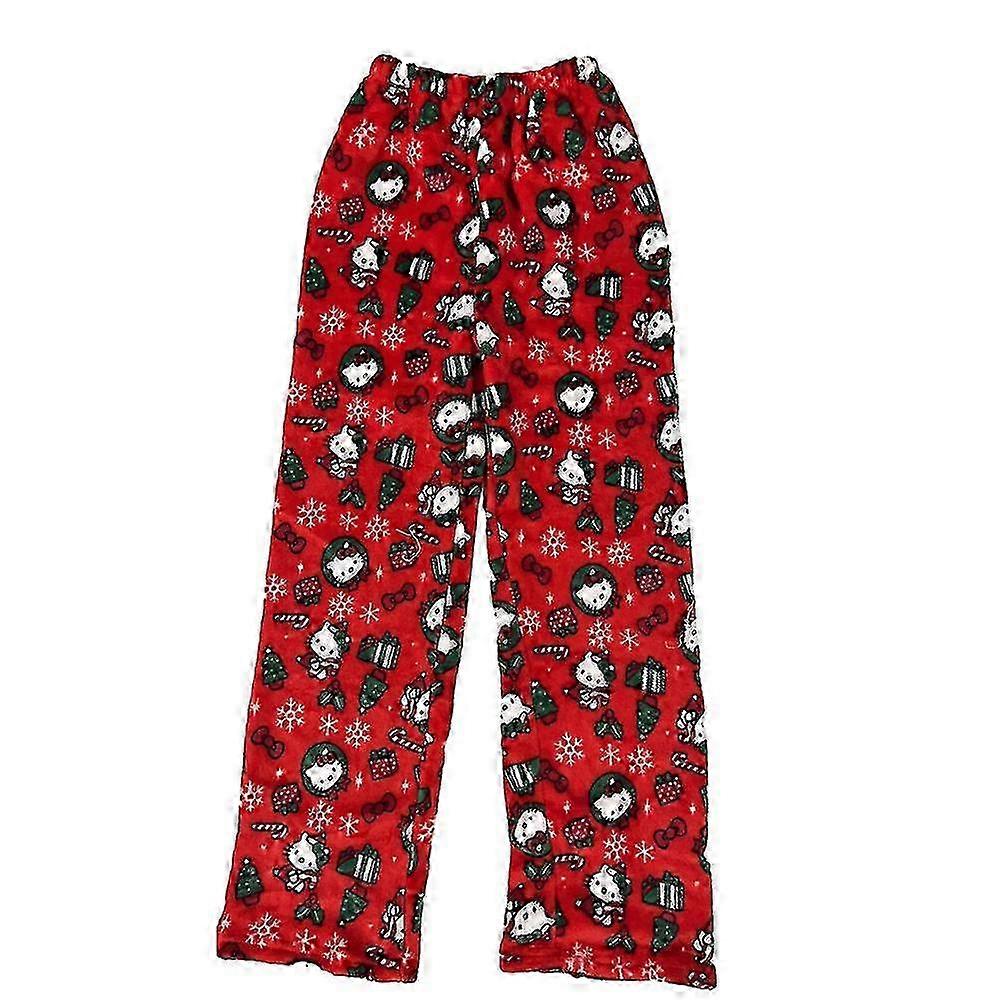 25-26 Christmas Sanrio Hello Kitty Pajamas Trouser Womens Elatsic Waisted Winter Warm Flannel Pajamas Pants