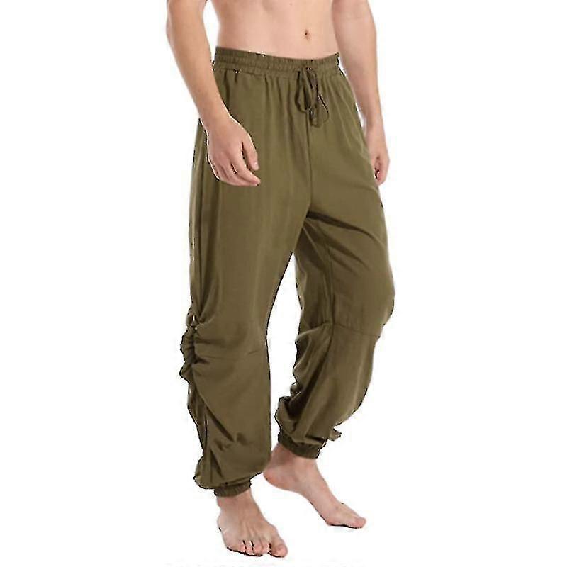 Men's Linen Casual Pants, Elastic Waist Drawstring Beach Yoga Trousers