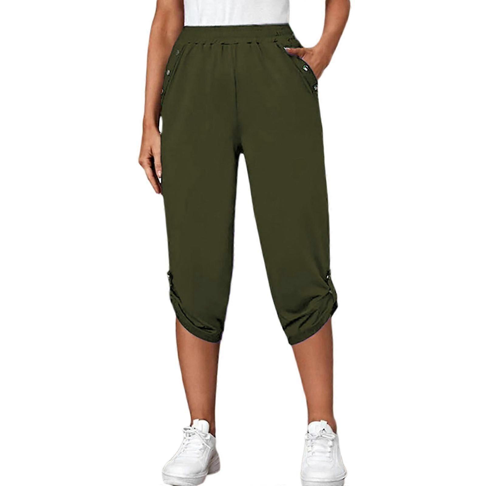 Womens Solid Capris Pants Stretch Pants High Waist Casual Cropped Pants with Pockets for Yoga Casual Work Purple XXXL