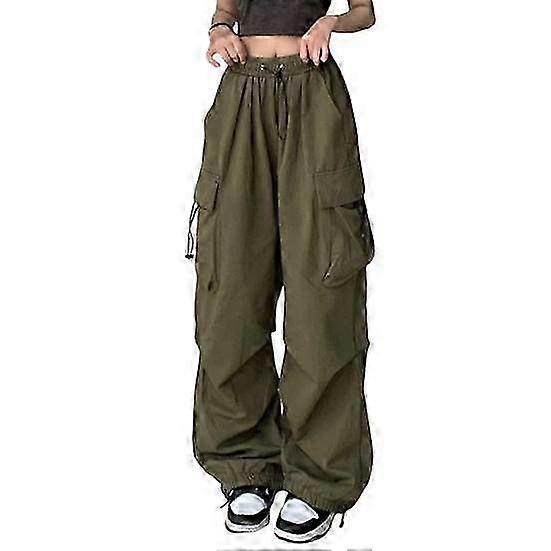Women's Hip Hop Cargo Pants - Baggy Solid Color Trousers with Multi Pockets & Elastic Waist - Loose Breathable Style for Everyday Wear