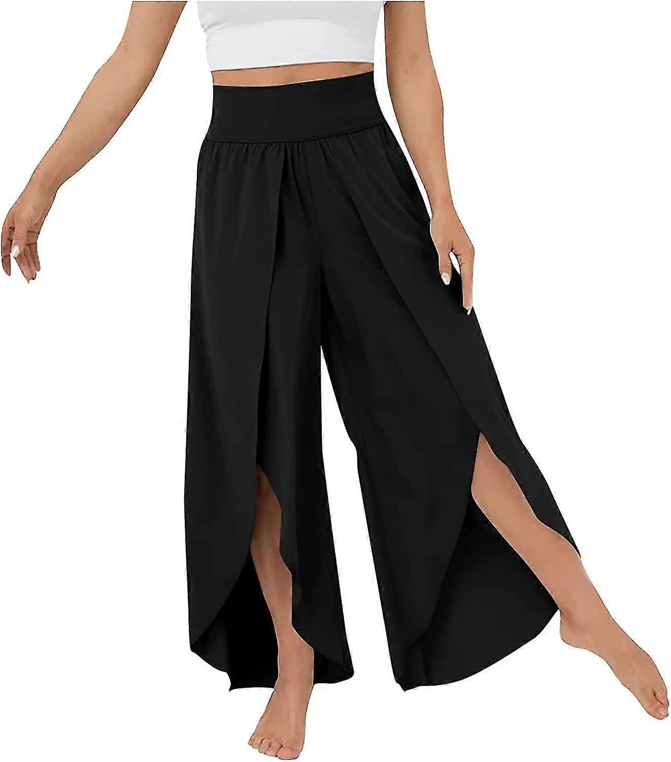 Women's Wide Leg Pants, High Waist Yoga Pants With Slits, Casual Flowy Beach Palazzo Pants For Women