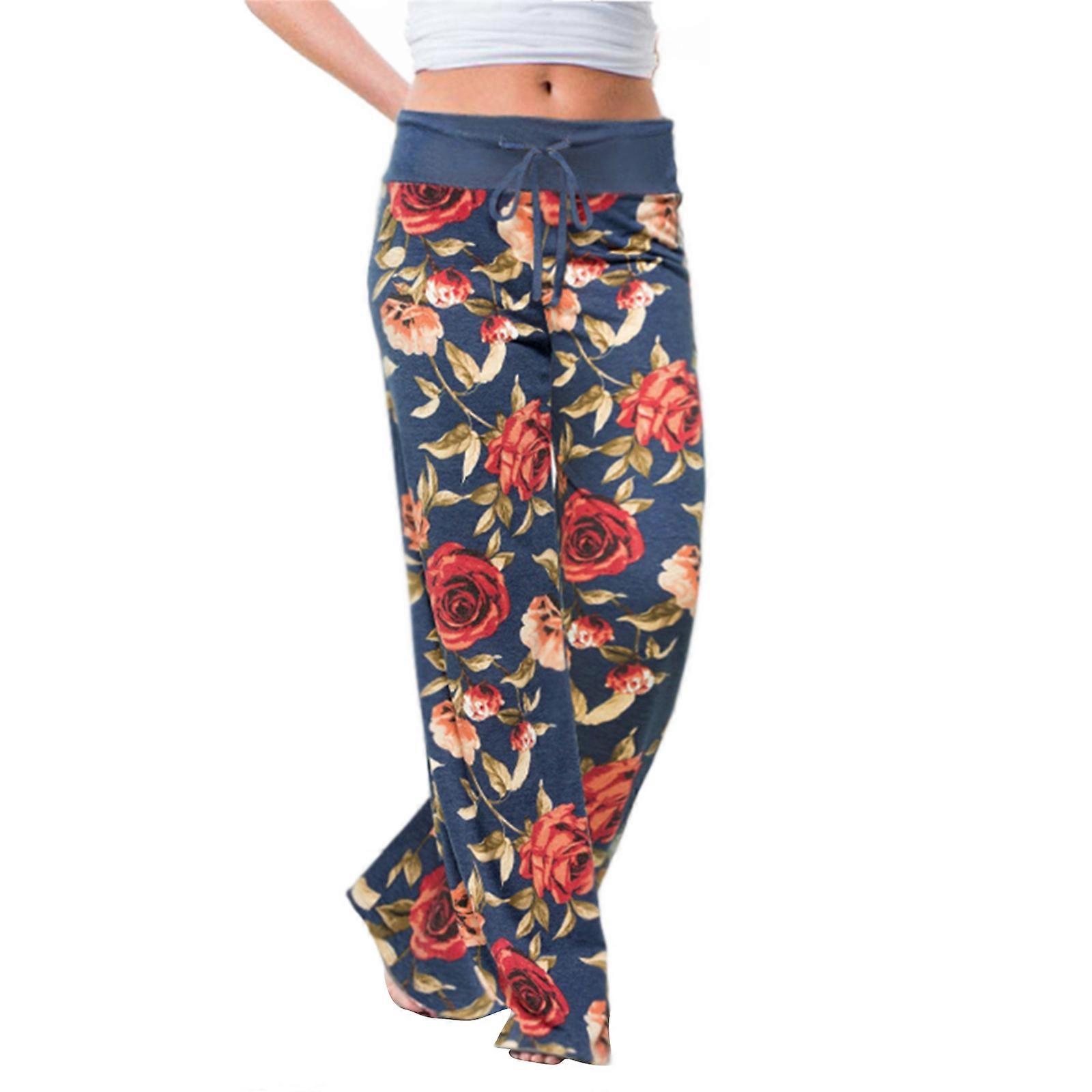 Wide Leg Pant for Women High Waist Straight Leg Drawstring Trousers with Pockets Casual Print Straight Pant Summer S