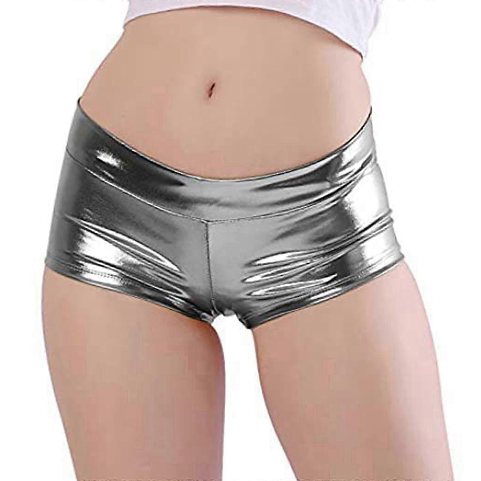 Women's Metallic Rave Booty Shorts Shining Low Waist Shorts Dance Festival Bottoms Faux Leather Hot Pants Clubwear Gifts Gun Ash M 26s