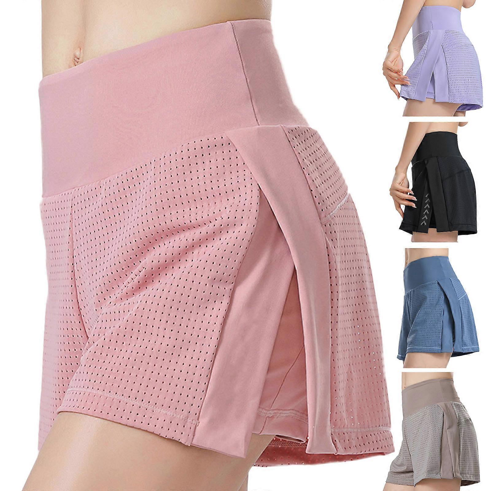 Women's Mid Waisted Workout Running Shorts with Liner Pocket 2 in 1 Athletic Sport Tennis Gym Shorts Elastic Quick-Dry Purple XL