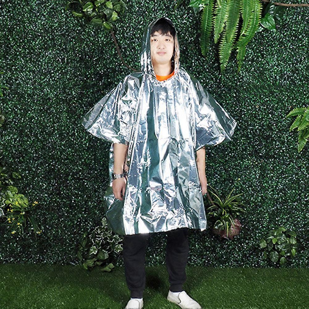 Hood Poncho Aluminum Film Raincoat Tent Mat Reflective Windproof Coldproof Multifuction Outdoor Survival Tool for Hiking Cycling