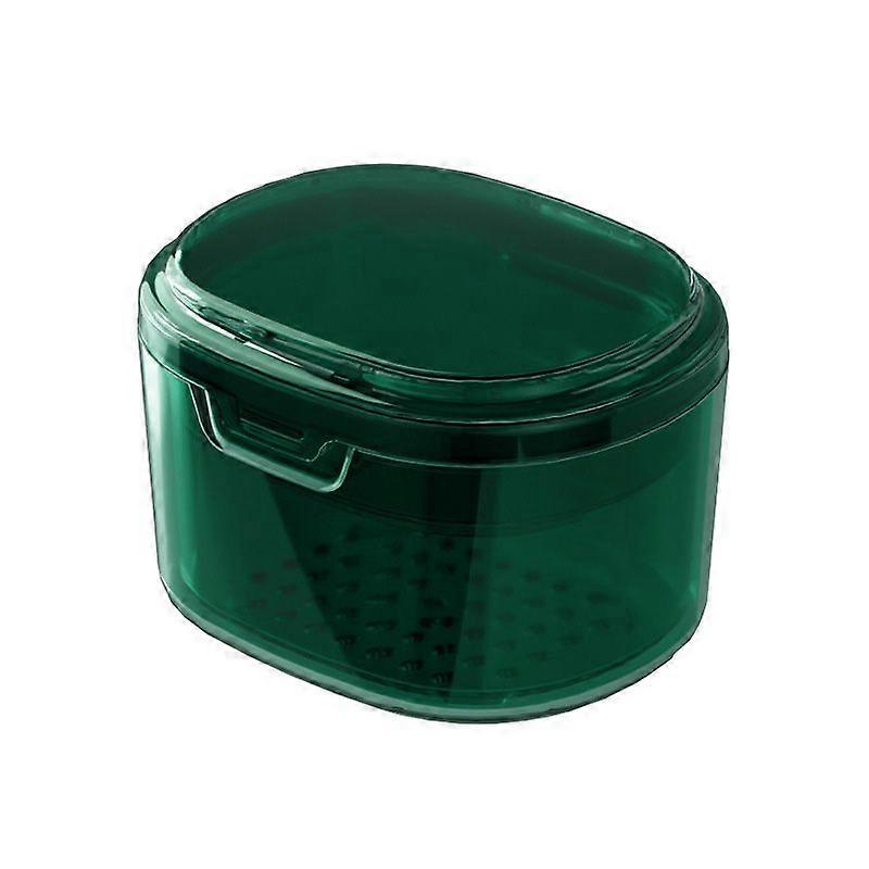 Convenient Carrying Lid Double Hollow Drainage Invisible Braces Organizer Orthodontic Retainer Cleaning Case Denture Case--Green