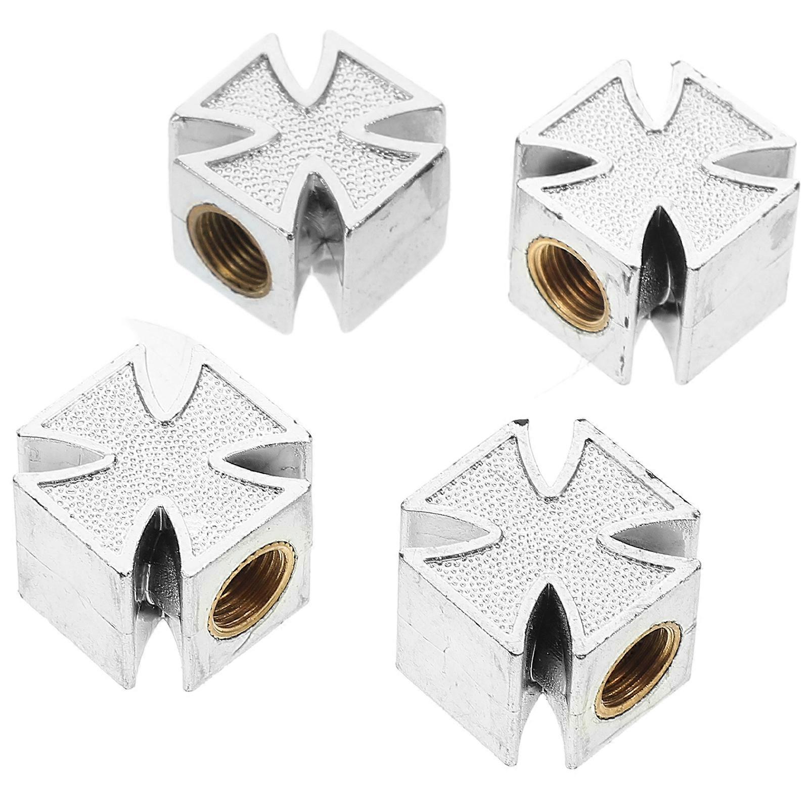 Silver Car Tire Valve Stem Caps Cross Shaped for 4Pcs Universal Tire Valve Covers
