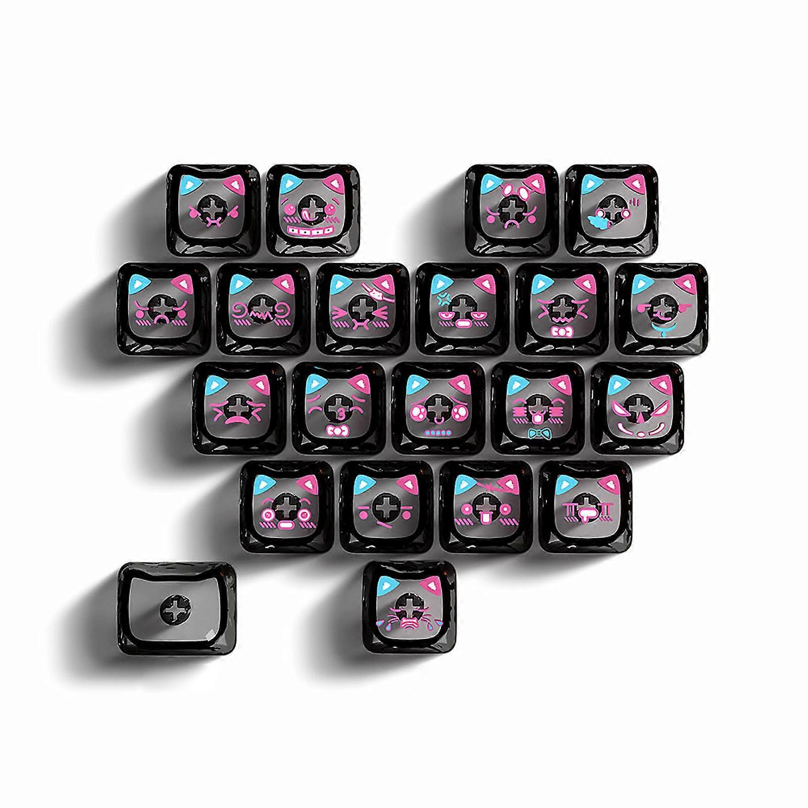 Creative Kitten Pattern Keyboards Keycaps In Soft Pink/Black With Heart Details Widely Fit For Mechanical Keyboards Pink color