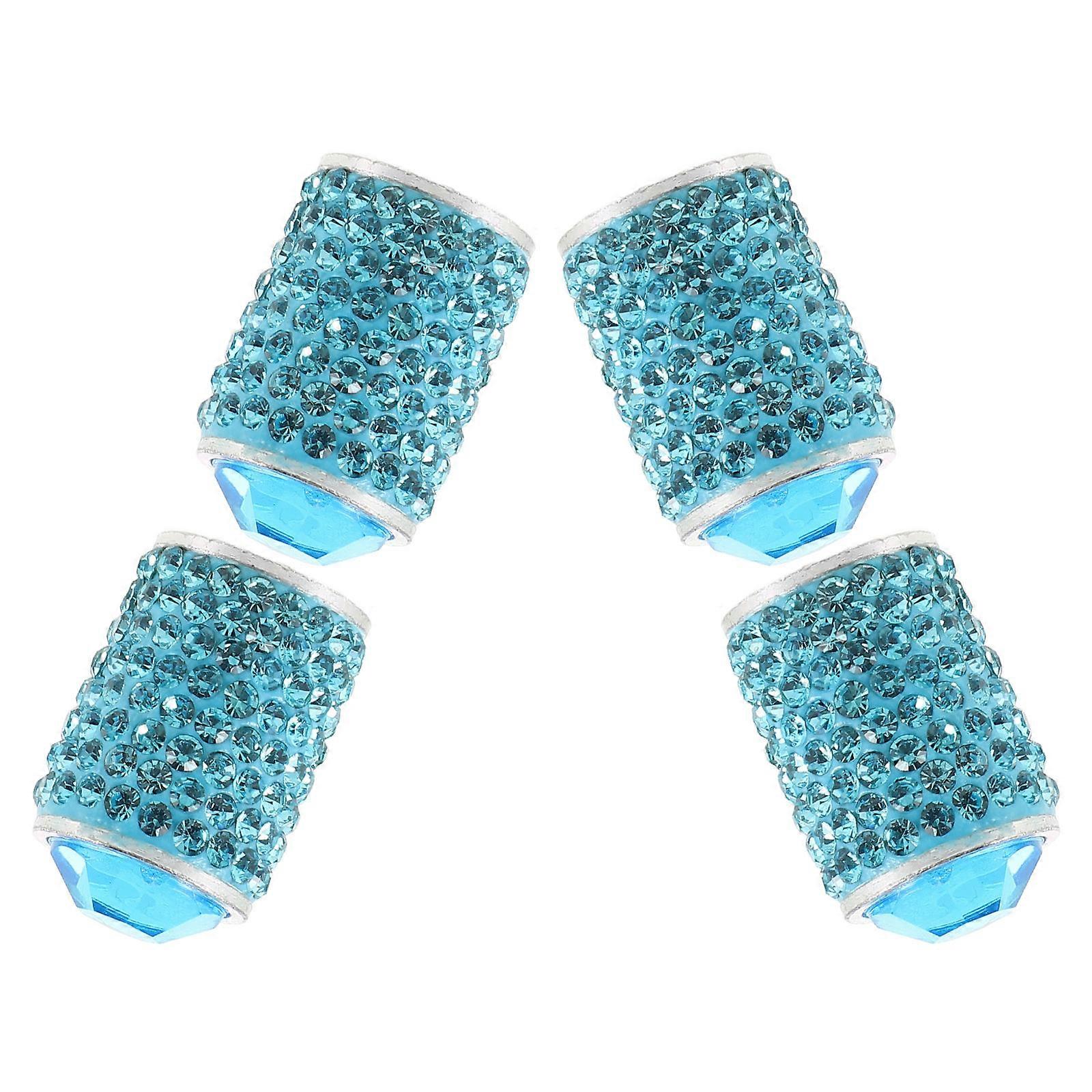 Crystal Rhinestone Tire Valve Caps Sky-Blue Aluminum Alloy for Car Use 4Pcs Set