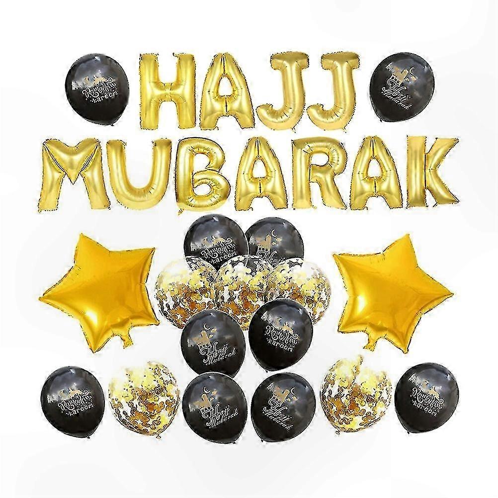 HAJJ MUBARAK Letter Latex Balloons Decorative Celebrative Background Layout Balloons Set for Eid Al-Fitr (Black and Glod)