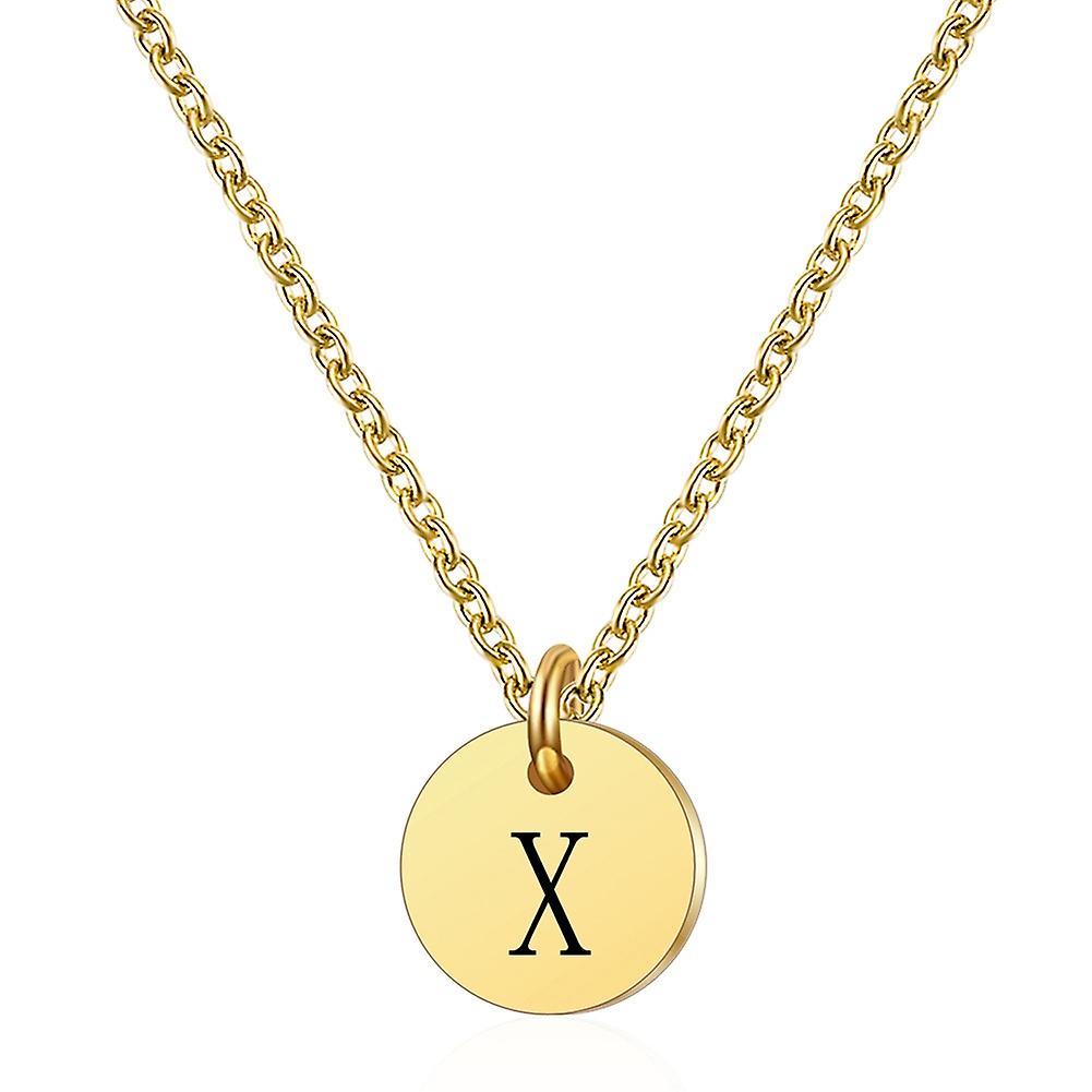 Women Letter Round Pendant Titanium Steel Clavicle Chain Necklace Jewelry Gift