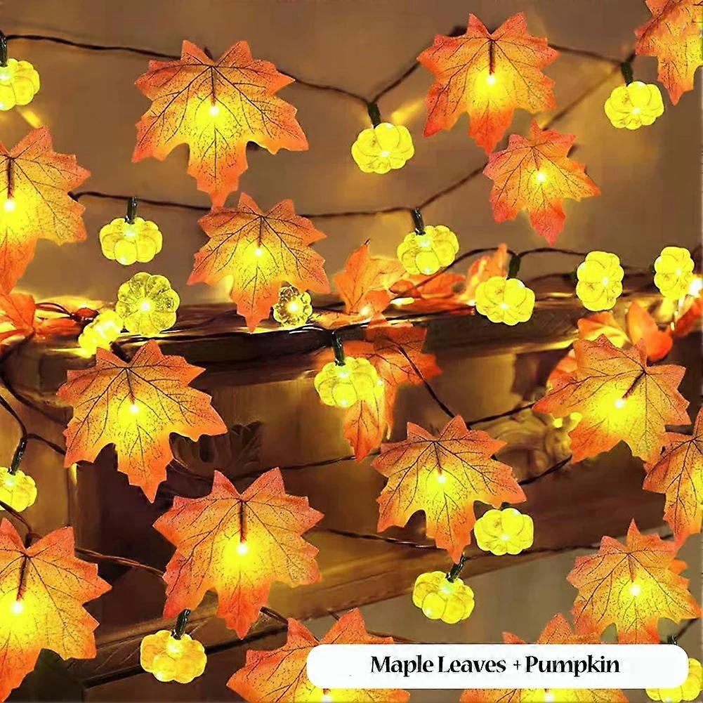 Artificial Autumn Maple Leaves Pumpkin Garland LED Fairy String Light Christmas Thanksgiving Decoration DIY Halloween Party Home