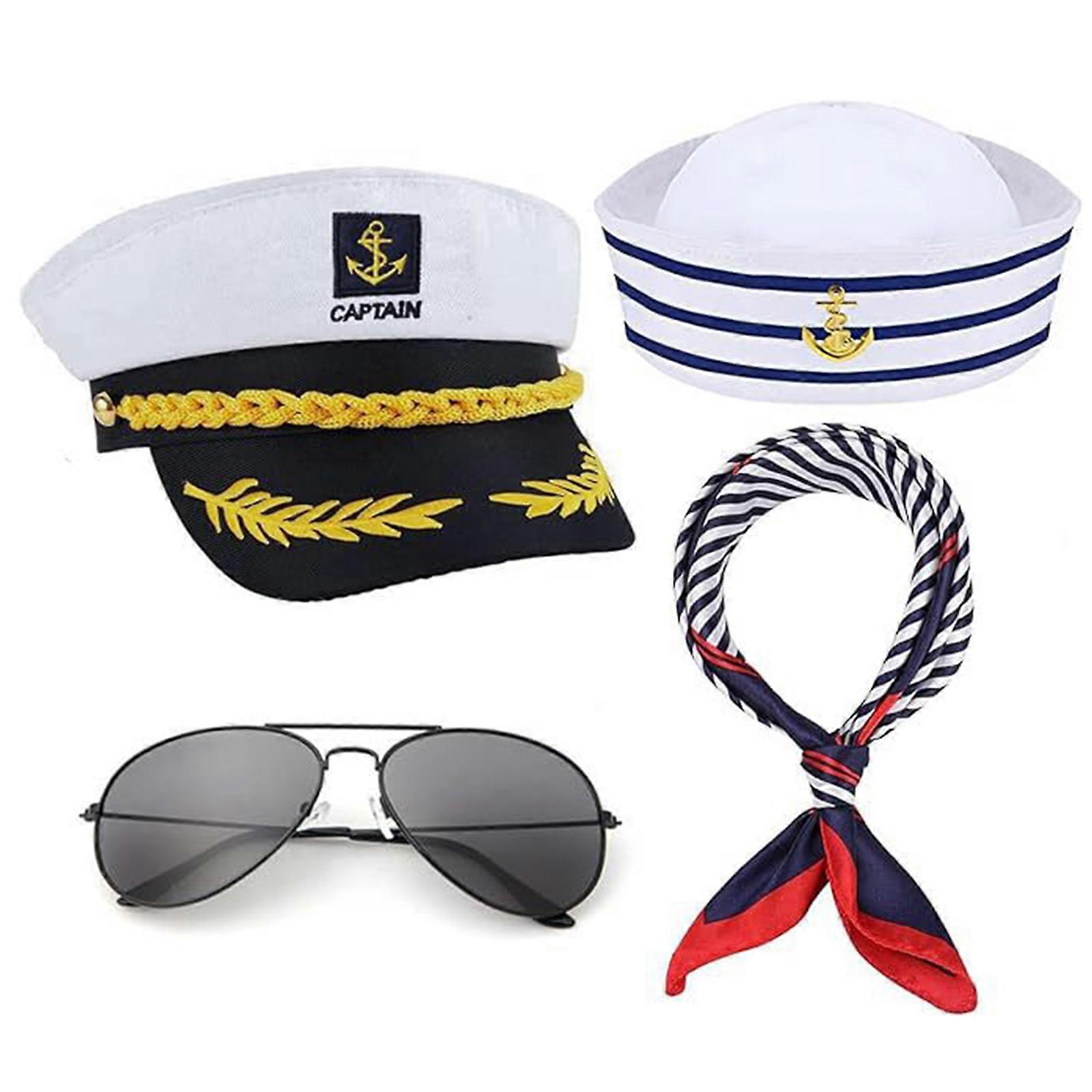 Sailor Silk Scarf Captain Hat Sunglasses Set for Bachelorette Party Wedding Celebration Marine Cap Sailing Party Costume 4 piece set